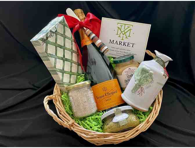 The phenomenal team at Market has got you covered for bubbly and some great amuse bouche. Veuve Clicquot Brut Champagne, Basilico olive oil, roasted garlic mustard, fresh basil pesto, sea salt flavored with capers, and more make this gift basket a winner!
