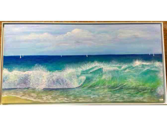 Karin Taylor donated this framed original painting "Winter Break" to the Rotary Auction.  This painting in acrylics is 37" x 19".