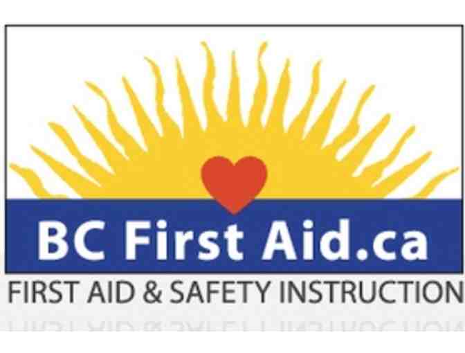 BC First Aid is pleased to offer a gift certificate for Emergency First Aid Training including CPR and AED training. Please call to discuss and confirm date/time at least one week in advance. 604-741-5009. 16 years of age or older only. BC First Aid provides first aid and CPR training for individuals and groups. Practical hands-on training delivered by compassionate certified instructors. www.bcfirstaid.ca