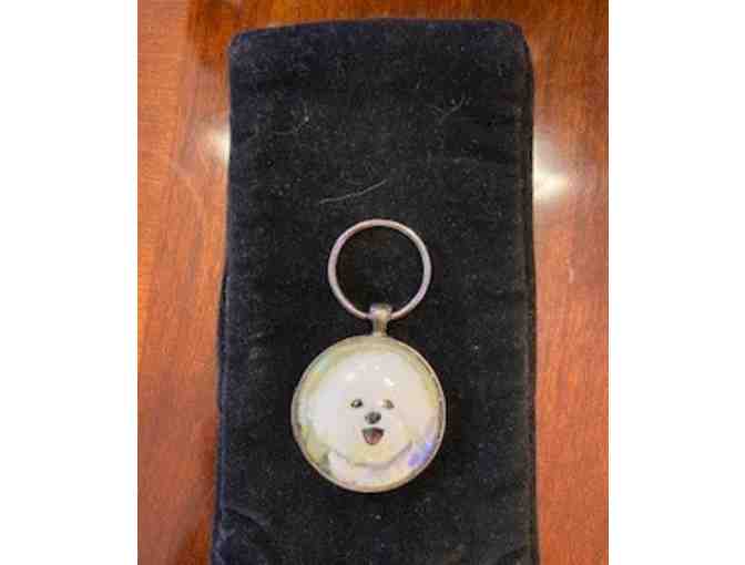 Gently used key ring features a sweet smiling Bichon