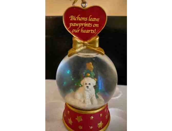 Vintage ornament in excellent condition. Inscription at top reads" bichons leave pawprints on our hearts". Approximate size is 5 inches. It will arrive in original packaging