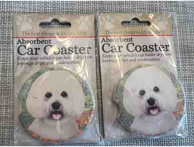 Set of 2 - Absorbent Car Coasters - Bichon