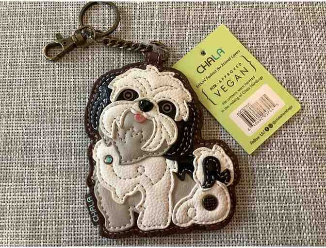 Sweet puppy from this Vegan company. I painted one with craft paint to get it all white like a bichon. You can clip it to keys or one of their purses.