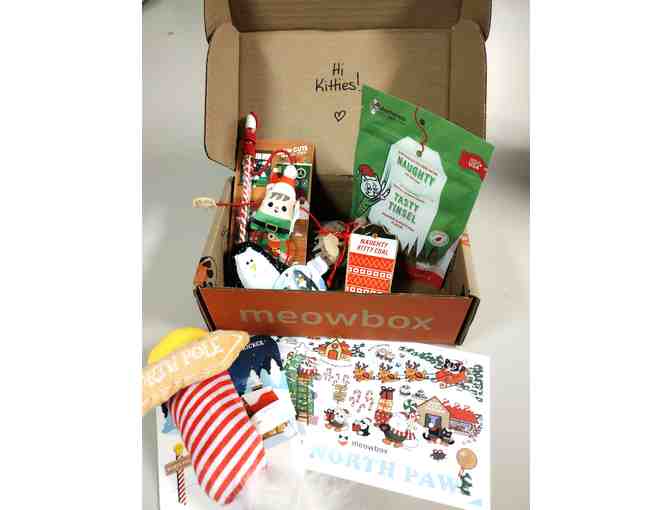 Sample Box from Meowbox (not a subscription) includes some sample toys treats and fun things for your cat.