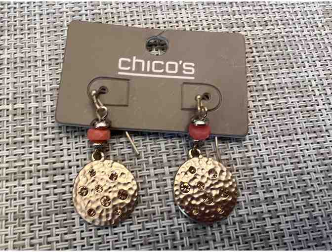 1in drop earrings with peach colored sparkles and a peach accent on the top of the drop