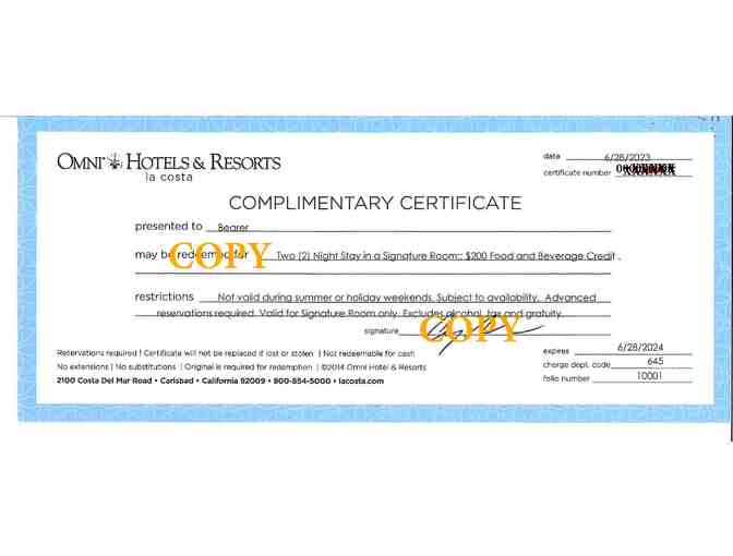 Omni Hotel & Resort La Costa - Two Night Stay w $200 Food and Beverage Credit