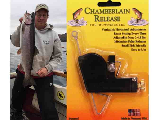 This gift certificate is redeemable for a fishing trip with Keith Chamberlain during the 2024 fishing season. For you and up to 3 friends, Keith will be your charter and guide of the majestic Willoughby Lake in Westmore, Vermont, and provide you with the trolling experience of a lifetime using his patented and internationally-sold Chamberlain Downrigger Release. The winner will also receive their very own Downrigger Release with the gift certificate!