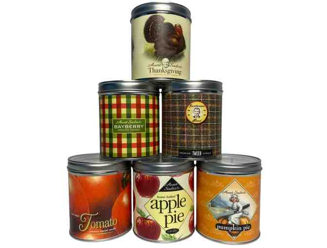 Welcome a symphony of scents into your home with this charming collection of six handcrafted candles from Aunt Sadie's, the quaint artisanal candlemakers in Lunenburg, Vermont. Each candle is a fragrant masterpiece, designed to conjure the cozy, comforting ambience of the changing seasons and cherished holiday moments.