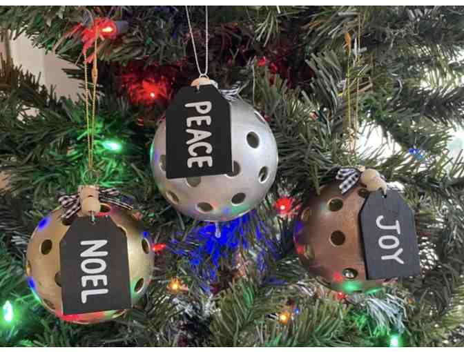 One-of-a-kind, custom-made ornaments, from pickleballs that have seen action. What a unique gift for a pickleball-playing friend or treat yourself!