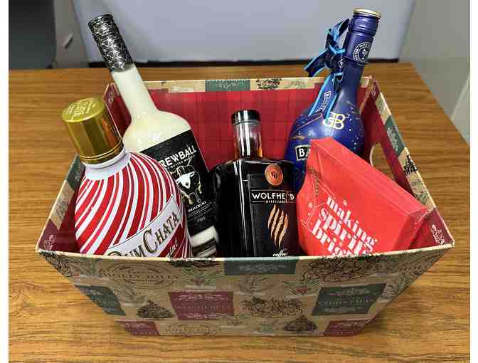 This basket features the perfect lineup for festive toasts and cozy winter nights by the fireplace. Bid now for the chance to win bottles of RumChata Peppermint, Eggnog Skrewball Whiskey, Wolfhead Distillery Coffee Whiskey, and Baileys Chocolate Liqueur. Whether you're treating yourself or looking for the ideal gift, this basket promises to elevate your winter celebrations.