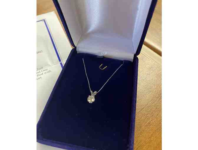 Experience true elegance with this beautiful 18 inch 14K White Gold Diamond Solitaire Pendant. Bid now to treat yourself to this dazzling piece or gift it to someone special this holiday season!