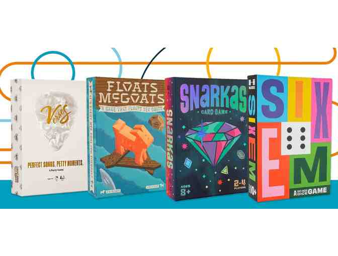 Ready for an epic Game Night in? First, grab you pizza - $50 toward carry out or delivery from Hometeam Pizza in West Nashville! Then, get your game on with this package that includes the 2024 game lineup from Nashville based Hootenanny Games. There's something for everyone with Floats McGoats (board game), SIXEM (dice game), Snarkas (card game), and Verses (party game).