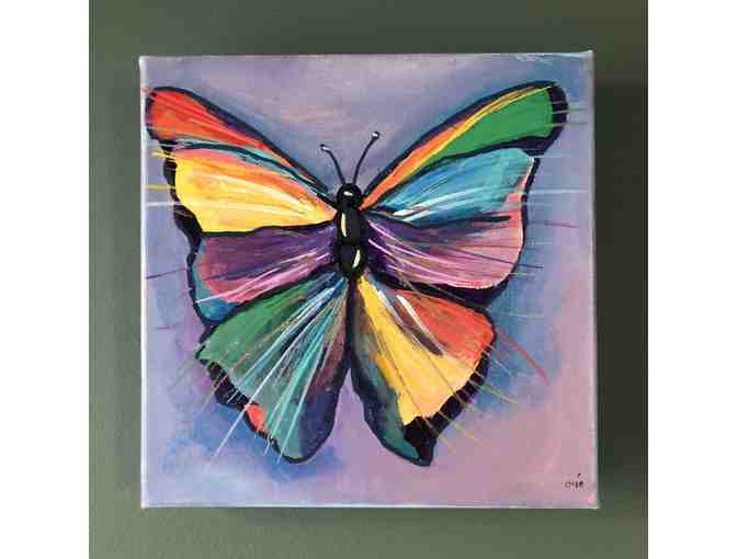 This beautiful and colorful butterfly is an original acrylic on canvas painting by Oya Arts.