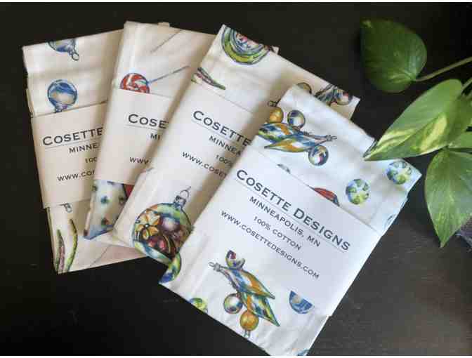 Set of four darling Christmas tea towels printed from original illustrations by Cosette Designs. These are lovely as home decor and also make fabulous hostess gifts!