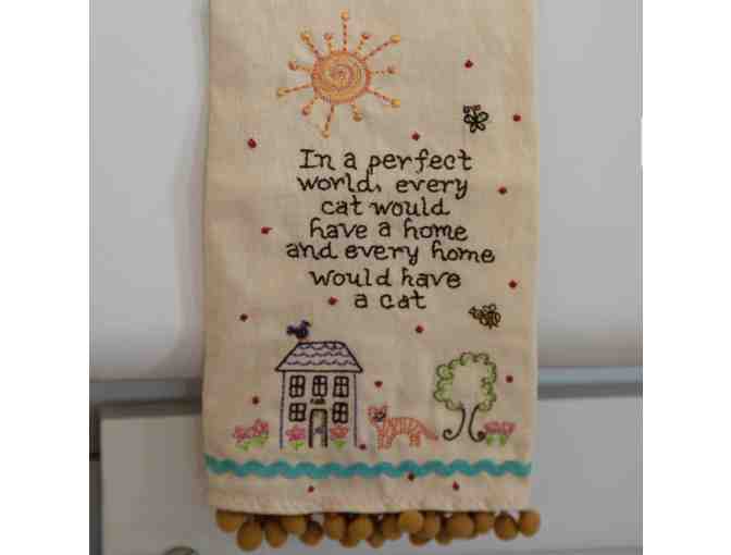This beautiful Linen Hand Towel makes an awesome gift! It's embroidered with a sweet sentiment and colorful design, accented with fun pom pom trim! A heart-warming addition to any kitchen or powder room, but it's so awesome, you might want to stretch and frame it instead.