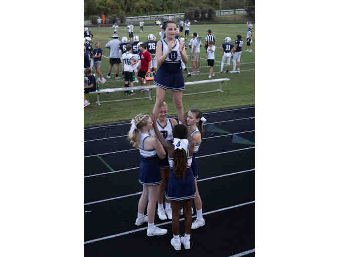 Make your little one's day! As Cheerleader for a Day, they will attend 2 practices during the basketball season where they will learn a cheer and a couple of sideline chants. Your child will then perform with the cheerleaders during a basketball game for one quarter cheer and one halftime cheer or perform with the cheerleaders for a cheer performance. Your child will also be able to wear the cheerleading uniform to school on game day or cheer performance day. Date to be determined.