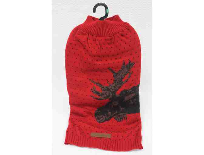 Keep your best friend cozy while out exploring in this cozy red sweater with moose illustrated on the back. It is made with a soft acrylic material that naturally traps heat to keep your furry friends warm.