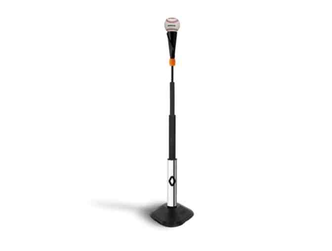 ProMag Hitting Tee - Patented chrome plated magnetic tee post slots into steel plate base for secure connection, rubber wrap top.