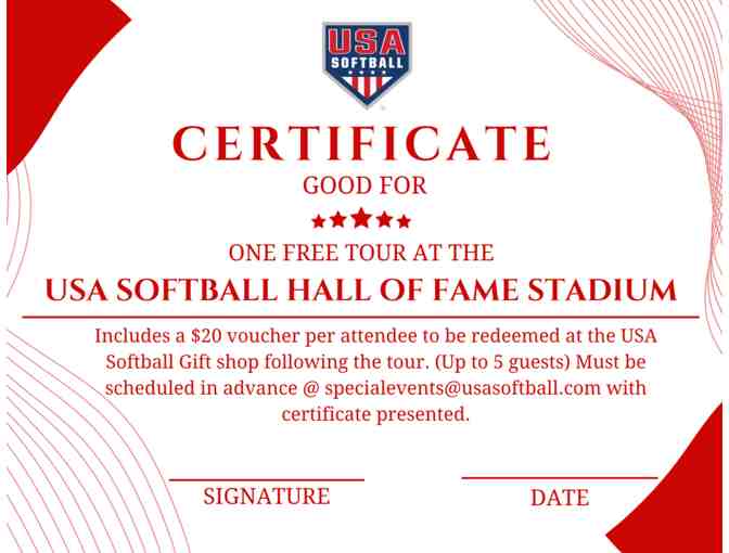 USA Softball Hall of Fame Stadium Tour - Tour of stadium and $20 per guest to the gift shop up to 5 guest