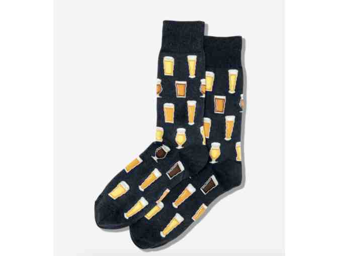 Dart to your next social gathering in these bold socks. Casual comfort in a crew silhouette finds the perfect balance in this striking pair featuring a pattern with glasses of beer.
