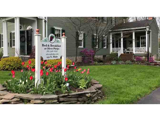 Experience Canandaigua from one of five comfortably-appointed and spacious guest rooms, all with private en-suite baths and several with fireplaces. The Bed and Breakfast at Oliver Phelps is tastefully furnished with period antiques, 12 ft ceilings, and an inviting fireplace for a unique feeling of historic grandeur. Awake to a delicious three course breakfast served with local juices, coffee, or tea. Then, enjoy the park-like setting in the backyard with 40+ trees, enclosed Gazebo, and open deck for you to sit back and relax. When the day is done, revel in the delicious spoils acquired from your adventures with wine, cheese, and home brew.