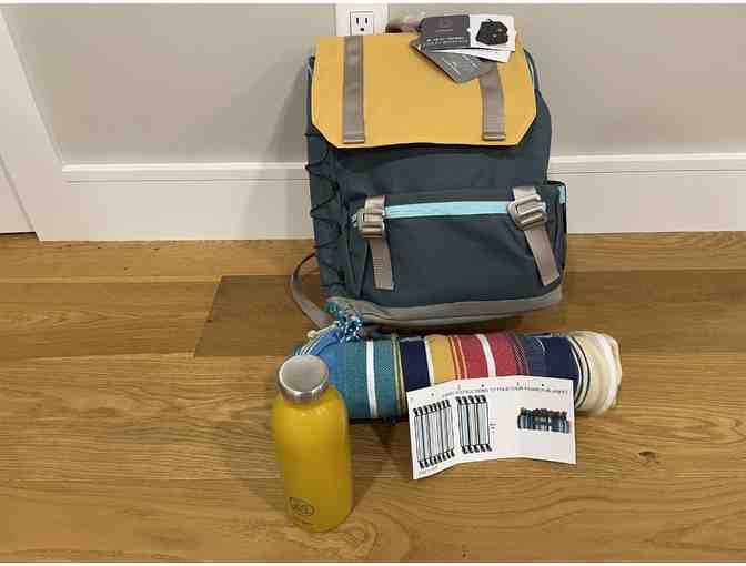 Take along this wonderful packpack kit to next summer's beach picnic.  It includes an Oniva insulated backpack with a colorful blanket and a water battle.