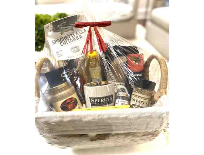 Foodies, look no further! This Sperry's Mercantile gift basket of artisan food includes Sperry's custom seasoning, infused oils, artisan pasta, a Hammond's candy bar, a $25 gift card and more!