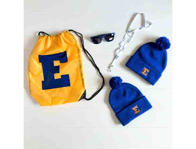Show your Edison HS pride with this collection of items! Includes two pompom beanies, sunglasses, and a lanyard all in a string bag. Go Tommies!