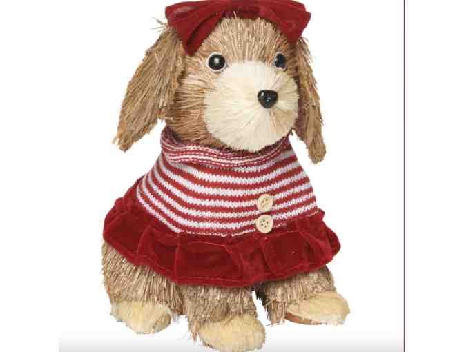 Give your living space a whimsical update with this New Star fabric and straw dog decoration, made from lightweight materials.