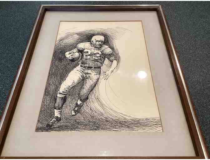 Famed Detroit Artist Leo Kuschel, pen and ink of QB Bobby Layne.