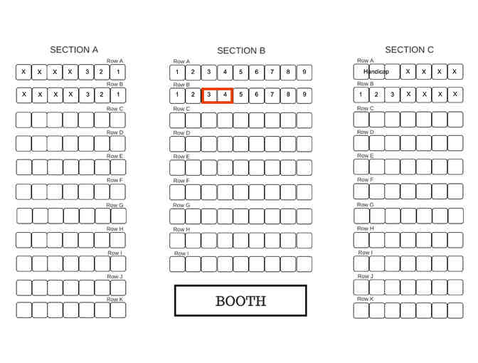 YOU ARE BIDDING ON SEATS: Section B, Row B, Seats 3 & 4