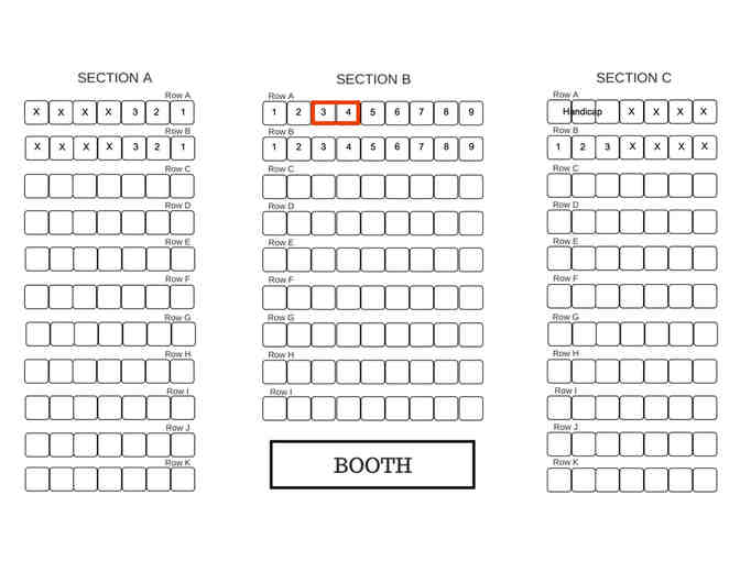 YOU ARE BIDDING ON SEATS: Section B, Row A, Seats 3 & 4