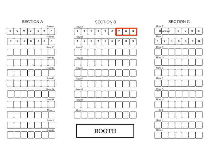 YOU ARE BIDDING ON SEATS: Section B, Row A, Seats 7, 8, & 9