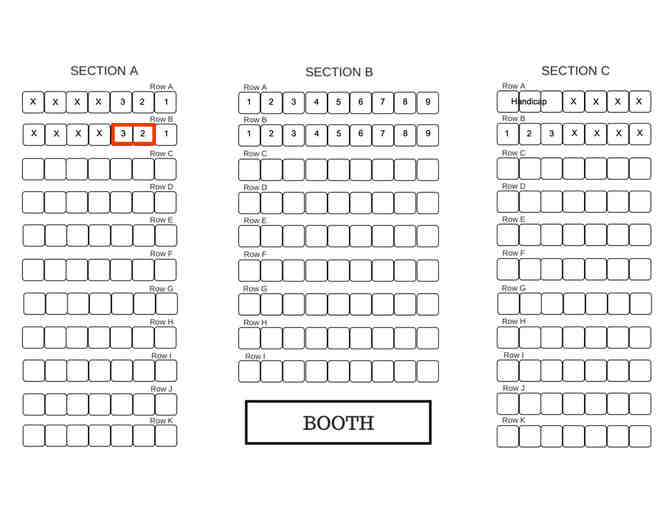 YOU ARE BIDDING ON SEATS: Section A, Row B, Seats 2 & 3