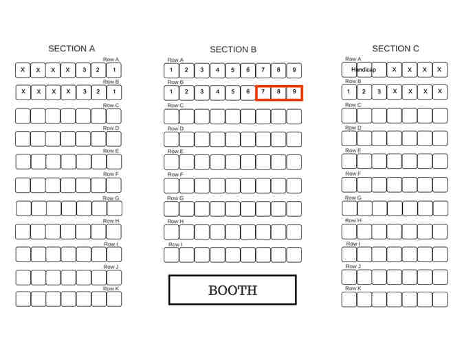 YOU ARE BIDDING ON SEATS: Section B, Row B, Seats 7, 8, & 9