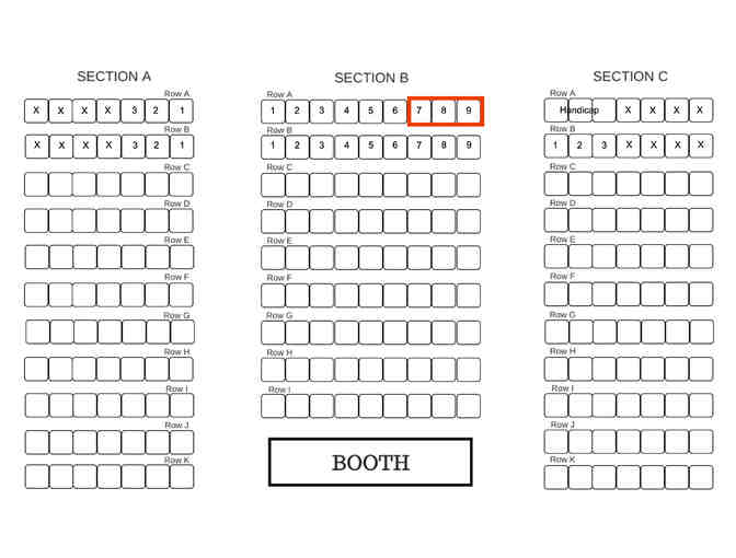 YOU ARE BIDDING ON SEATS: Section B, Row A, Seats 7, 8, & 9