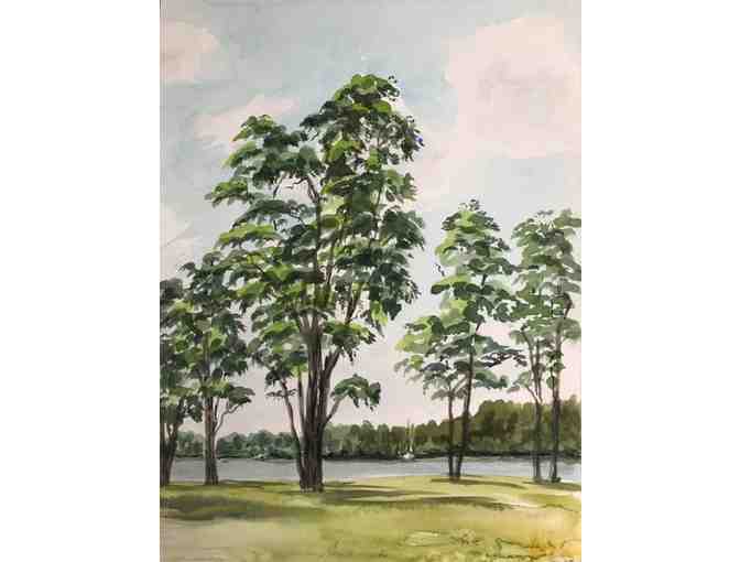 Watercolor - Black Locusts and Sailboat at Kingsland Bay