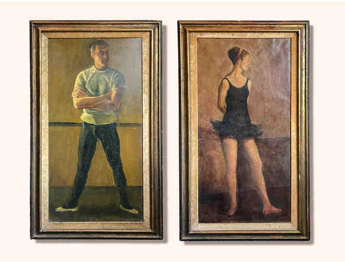 These paired paintings are believed to be from Leona Norman’s house on Lincoln Avenue, the site of the original Marin Ballet studios. These 28” x 48” framed oil paintings depict a male and female dancer in repose. Honor Marin Ballet’s founder by displaying these lovely pieces of her collection in your home. Artist unknown.