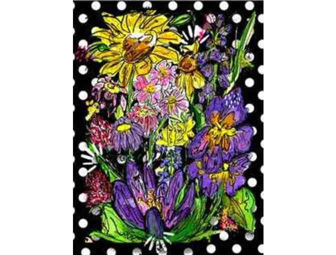 Try a new still life with a twist for yourself or as a gift. Originally a watercolor painting, these flowers were digitally manipulated to make a funky piece.