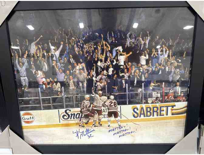 amazing inscribed photo from game 7 of the Stanley Cup signed autographed 16x20 photo! RARE! Must have for Rangers fan!! Matteu scored the series winning goal captured this unbelievable moment in NY Rangers history.