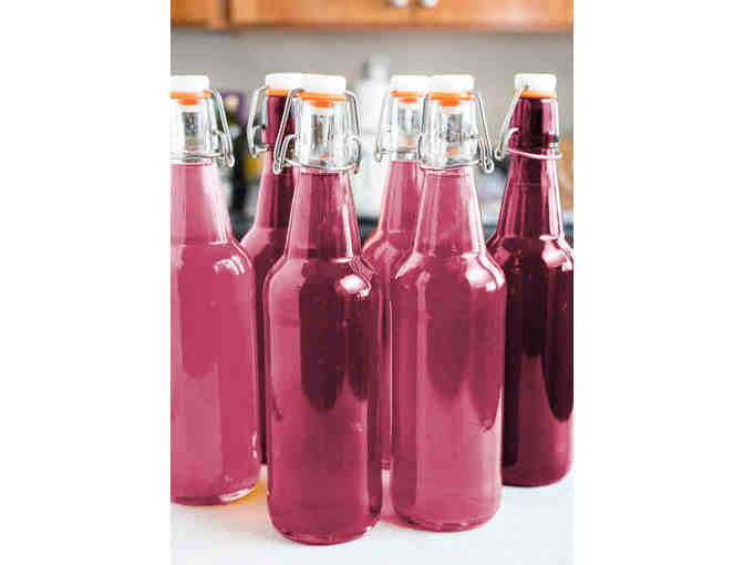 6 bottles homemade acai kombucha, 1 bag of homemade kale chips, 1 bag homemade broccoli chips made by Walgrove's very own power mama, Kate Pletcher!