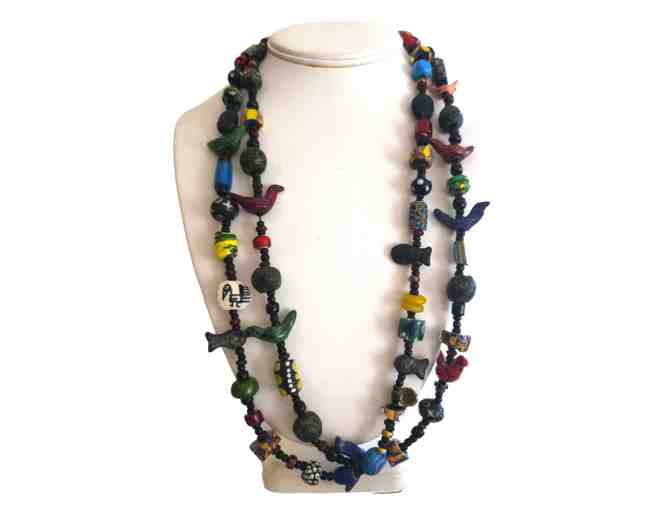 Beautifully crafted, unique, double layered Bird Bead Necklace made by Constancia Leshin.