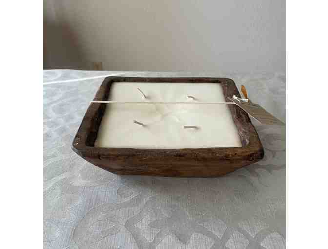 A 4 wick soy candle hand poured into a primitive wooded bowl. Scent is Peppercorn Pomander. Imagine a wooden bowl sitting on your tabled filled with the most beautiful oranges studded with intricate designs of peppercorns. Aromas of peppercorns, oranges, tonka bean and apple. measures 8' x 8" x 2"