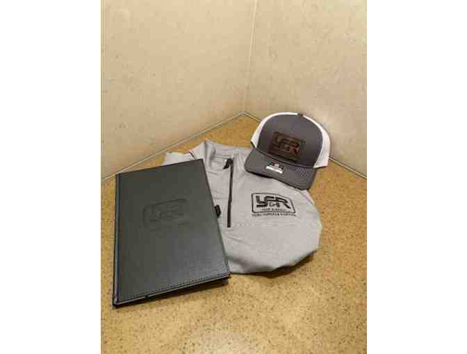 Men's XL YF&R branded quarter-zip, hat, and notebook.