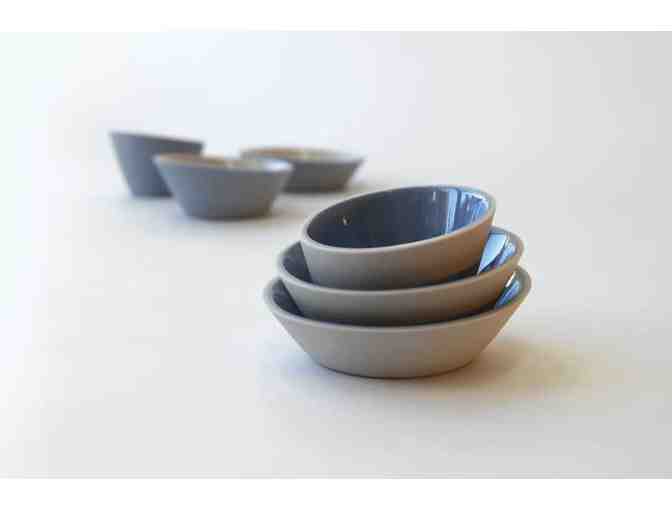 Cast in various two-color combinations of stained porcelain, the Mini Bowls nest elegantly inside each other. They can be used to serve spices and sauces, or to hold small items such as jewelry.