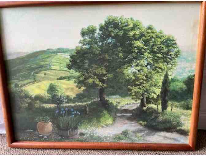 Solid Koa wood framed "Italian Countryside" by Edwin Kayton. (23"x17")
