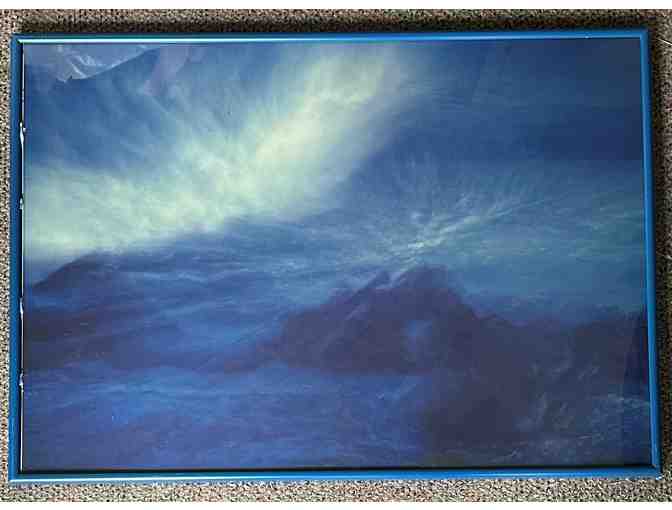 Blue framed photo of Mt Haleakala (approx 23'x16')