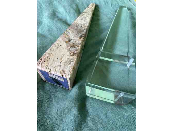 F LLI Mannelli (Italian artist) Travertine obelisk with bonus clear obelisk