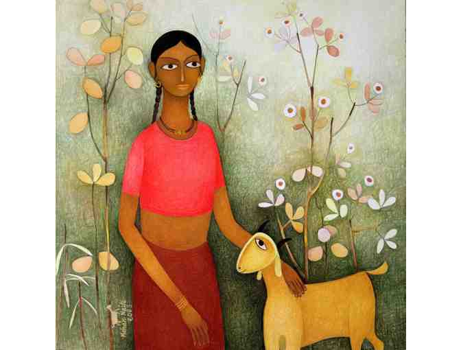 Girl with her friend - Painting by Mohan Naik