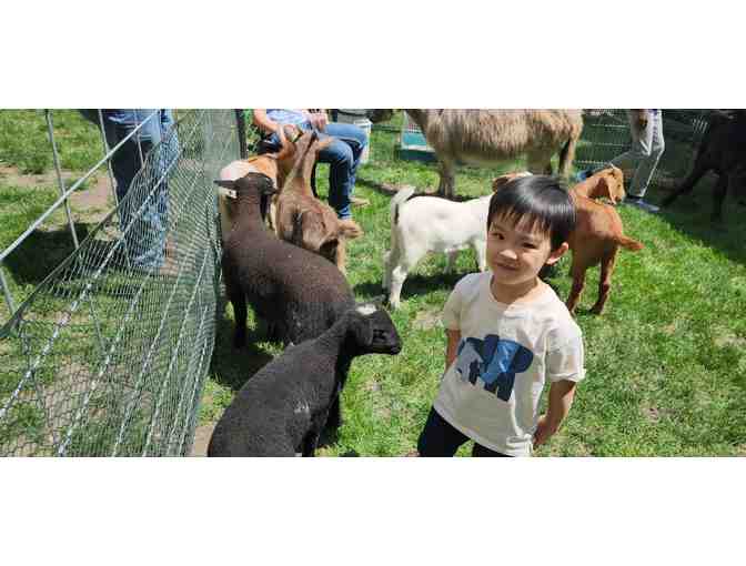 There will be ~15 fuzzy animals for you to meet! Goats, lambs, ducklings, chicks, bunnies, piglets and a donkey or calf! This year, there will also be a pony kids can ride too!